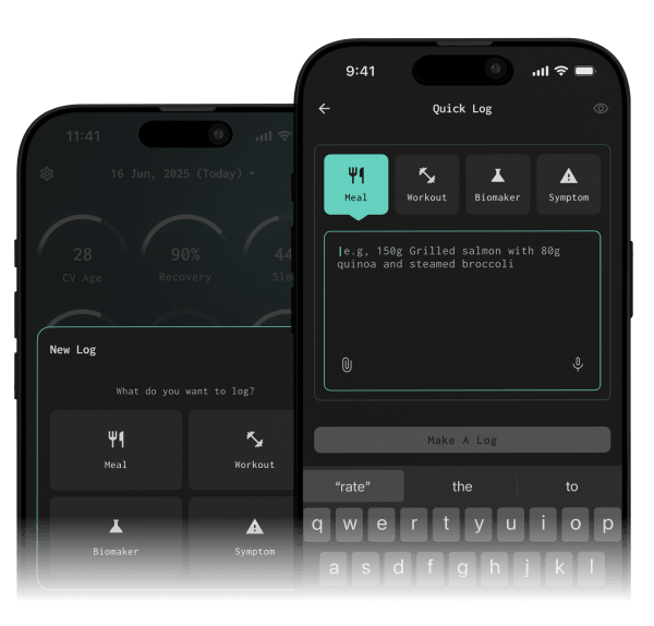Log your meals, workouts, biomarkers, and schedule your medications without filling forms. Just speak naturally and the AI on your device.